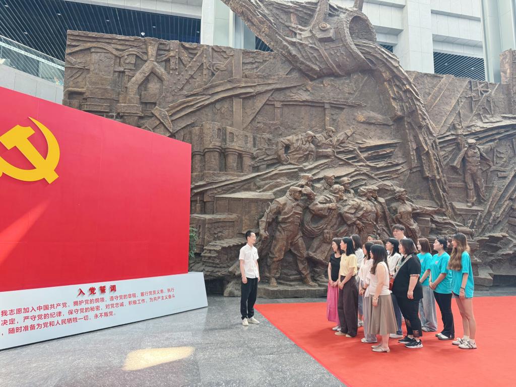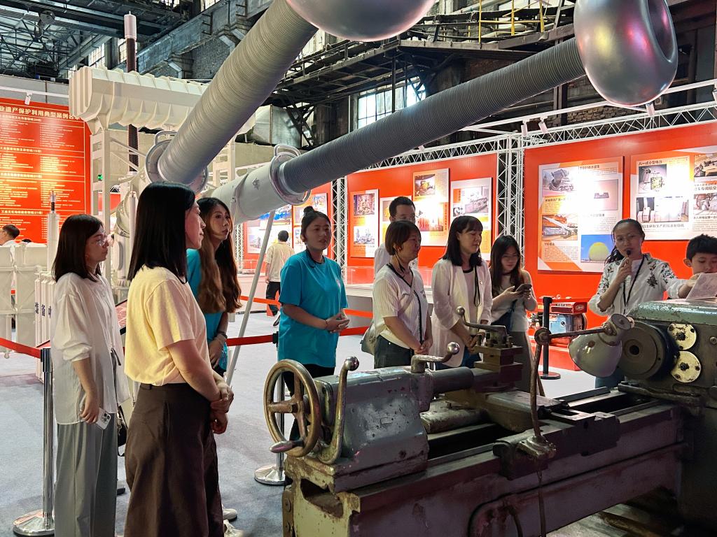 活动过程中,教师党员与学生代表跟随中国工业博物馆志愿讲解员、旅游管理专业任课教师代爽的脚步,依次参观了通史馆、铸造馆、机床馆、汽车馆等主题展厅,近距离观摩了新中国成立初期的老式机床、第一枚金属国徽的铸造模具、自主研发的工业装备等历史实物。